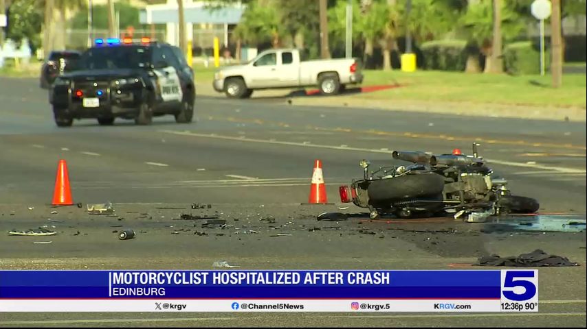 Motorcyclist hospitalized with serious injuries following crash in Edinburg
