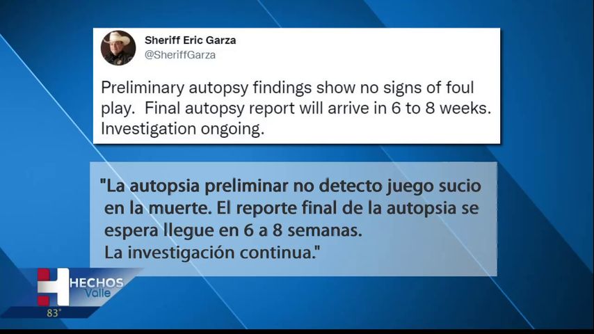 Garza dice que el informe final de la autopsia llegará en seis a ocho semanas.