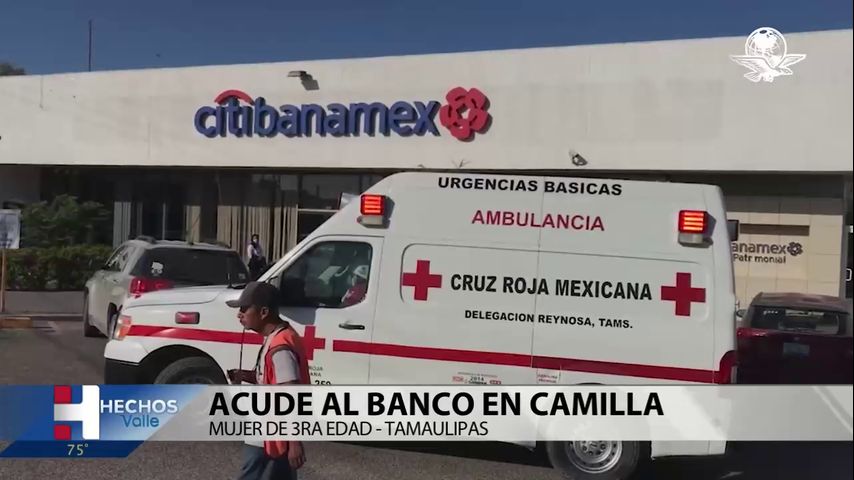 Una mujer de la tercera edad de Reynosa tuvo que acudir al banco en camilla para poder cobrar su pensión, que estaba detenida desde hace 6 meses por procesos burocráticos.