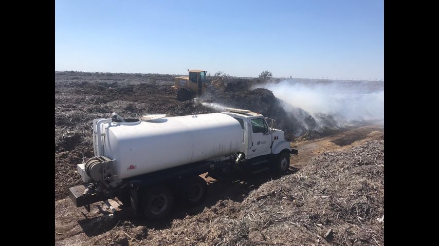 Multiple agencies responded to large piles of mulch on fire at the McAllen Composting Facility Sunday afternoon.