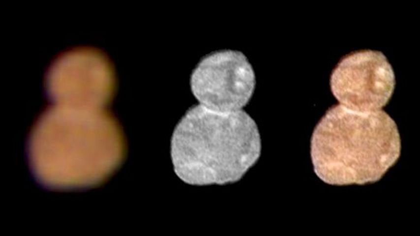 The snowman picture was taken a half-hour before the spacecraft's closest approach early Tuesday, from a distance of about 18,000 miles (28,000 kilometers).