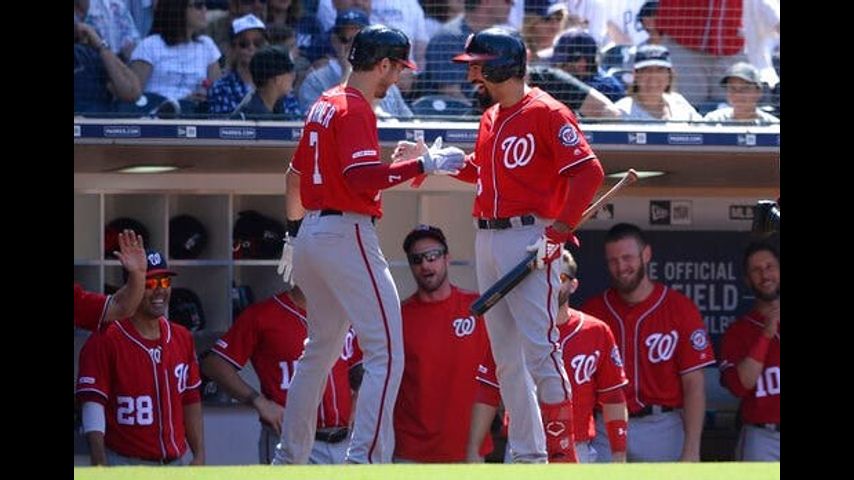 SAN DIEGO (AP) - Howie Kendrick, Trea Turner, Adam Eaton and Anthony Rendon hit consecutive home runs off Craig Stammen with one out in the eighth inning and Stephen Strasburg beat his hometown team again as the Washington Nationals defeated the San Diego Padres 5-2 Sunday.