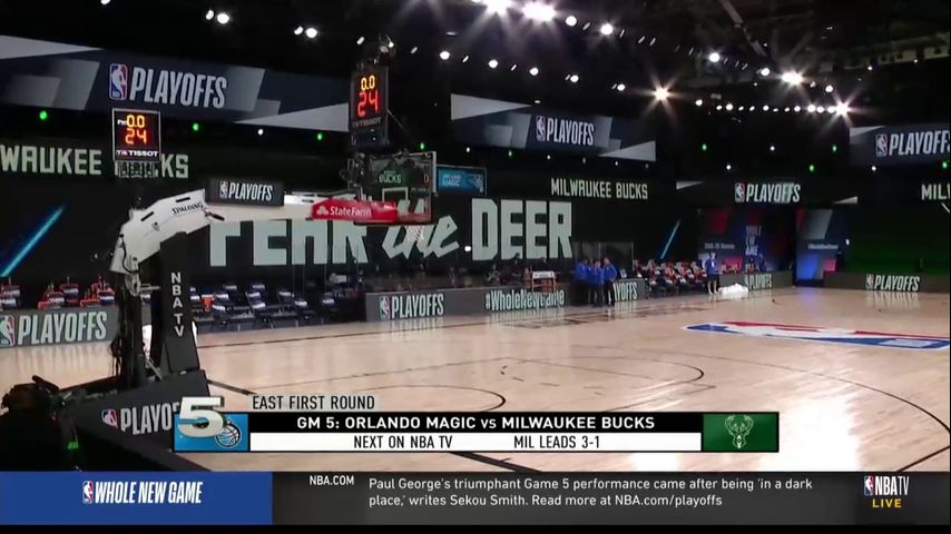 Magic players and referees were on the court as if the game was happening, unaware that Milwaukee did not intend to take the floor. The National Basketball Referees Association said it "stands in solidarity" with the players.