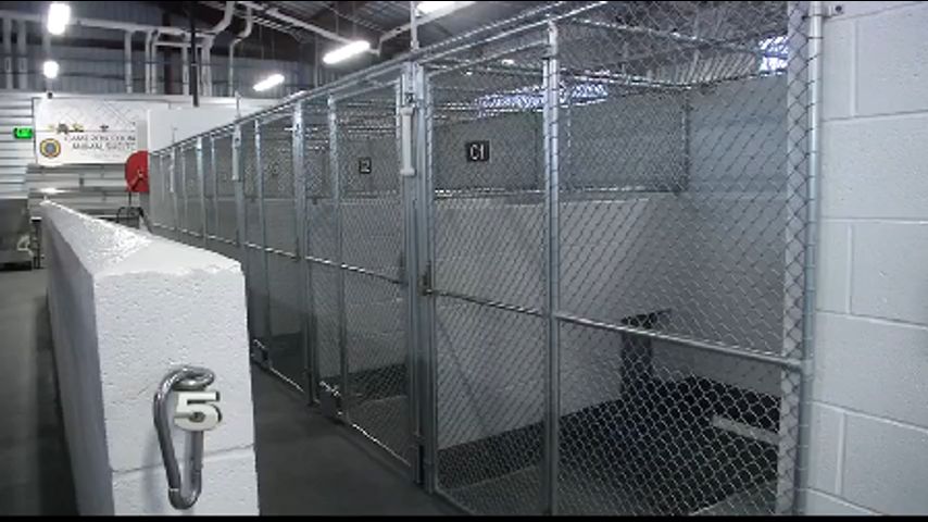 The shelter is more than 5,000 square feet, has 24 large kennels, 18 smaller cages for puppies and cats and 16 quarantine cages.