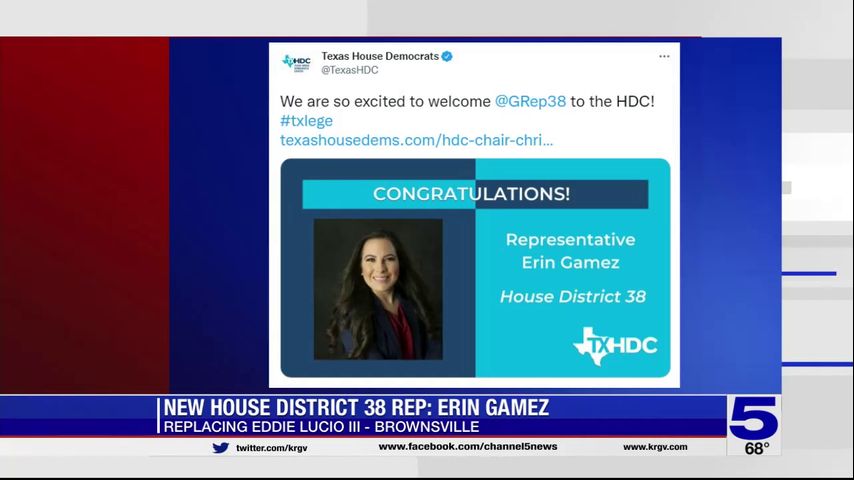 Small business owner and lawyer Erin Gamez was sworn in to represent House District 38, according to the Democratic Caucus Chair.