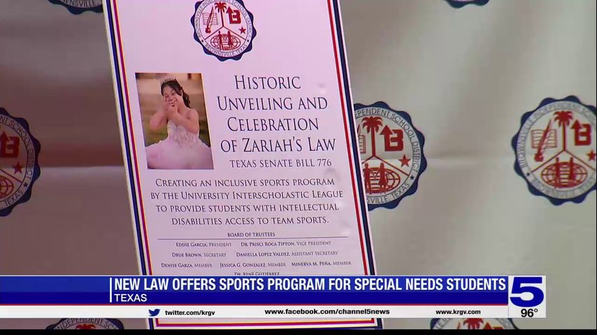 Special needs children across Texas will now have the same opportunity as their peers who participate in sports thanks to Texas Senate Bill 776, or Zariah's Law. The law ensures that the University Interscholastic League, or UIL, creates an inclusive sports program to provide students with intellectual disabilities access to team sports.