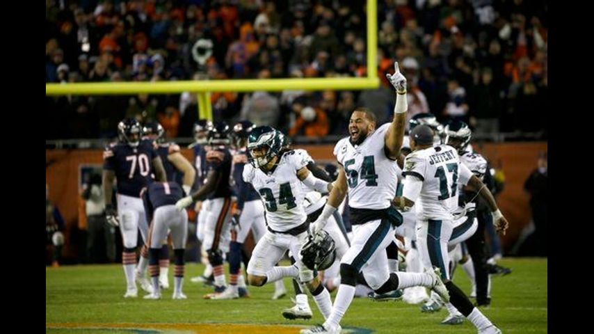 The Eagles took a one-point lead when Nick Foles threw a 2-yard touchdown pass to Golden Tate with 56 seconds remaining. Mitchell Trubisky drove the Bears into position to win it, but Parkey's kick didn't go through. Philadelphia plays at New Orleans next Sunday.