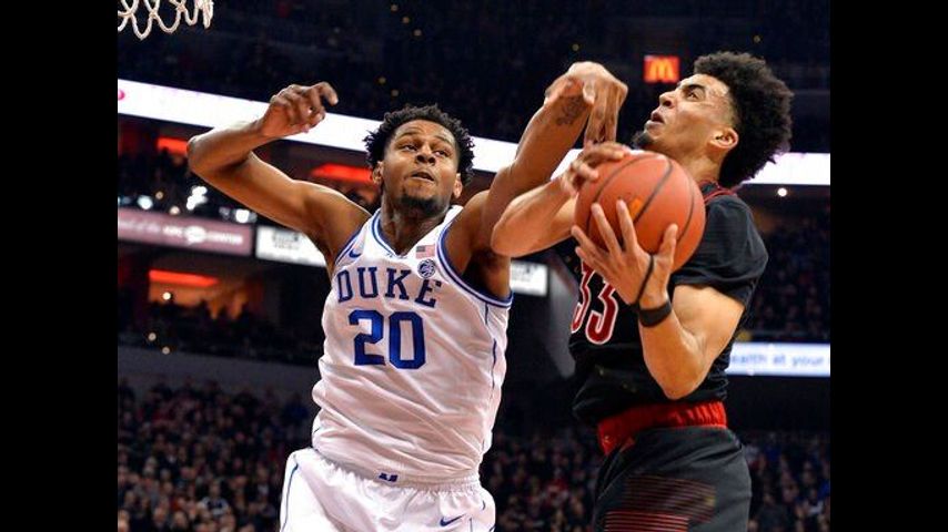 LOUISVILLE, Ky. (AP) - Cam Reddish made a tying 3-pointer with 1:28 left and the go-ahead free throws with 14 seconds remaining, helping No. 2 Duke overcome a 23-point second-half deficit to beat No. 16 Louisville 71-69 on Tuesday night.