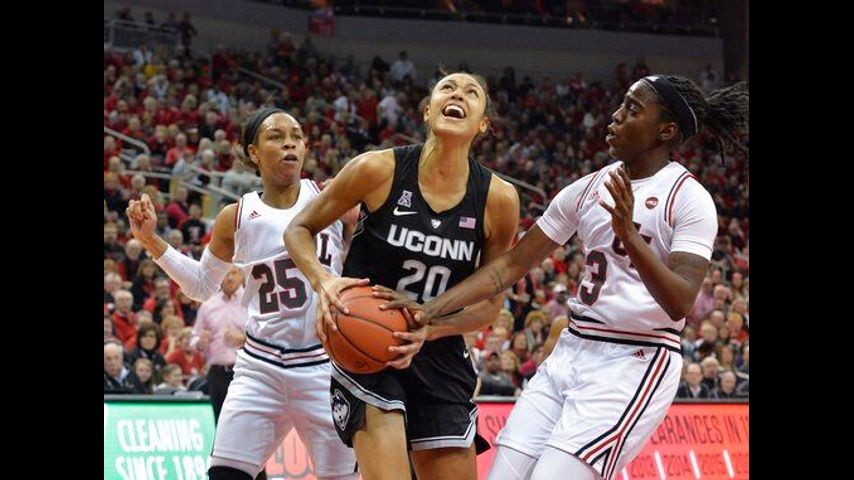 Jazmine Jones and Sam Fuehring followed with two free throws each for a 13-point lead and the Cardinals added four more from the line in the final 1:30 to seal their first series victory against UConn (18-2) since the inaugural meeting in the 1993 NCAA Tournament. Jones finished with 13 points and 12 rebounds, and Fuehring added 10 points and 12 rebounds.