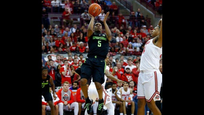 COLUMBUS, Ohio (AP) - Riding a seven-game winning streak, No. 8 Michigan State came to Columbus to play No. 14 Ohio State with captain and scoring machine Joshua Langford sidelined indefinitely with an ankle injury. The team's two other veterans had to pick up the slack.