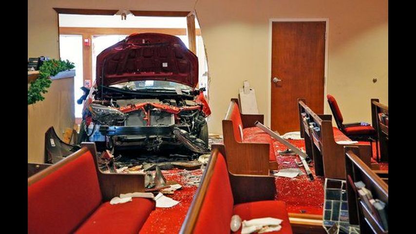 The Rev. Jay Anderson says members were singing a hymn when the car crashed through the wall. He says that the wall "just exploded" and that pieces of glass went flying.