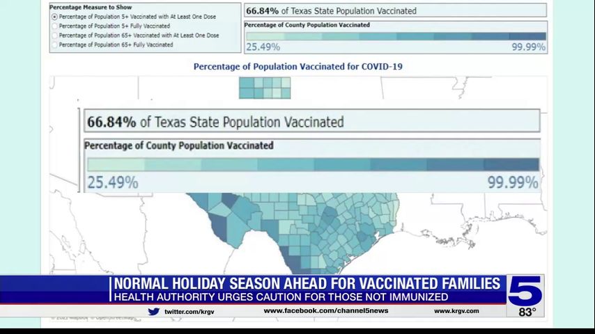 Data from the Centers for Disease Control and Prevention (CDC) shows close to 67% of Texans over 5-years-old have received at least one dose of the COVID-19 vaccine. In the Valley, experts say the rates of those vaccinated are higher, at an average of 82% in the same age range.