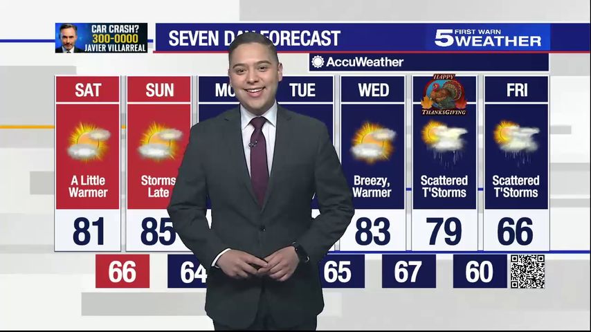 Nov. 20, 2021: Warmer day with temperatures in the 80s