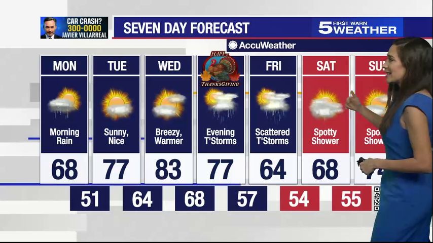 Nov. 22, 2021: Morning rain with temperatures in 60s