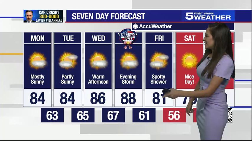 Nov. 8, 2021: Mostly sunny, temperatures in mid-80s