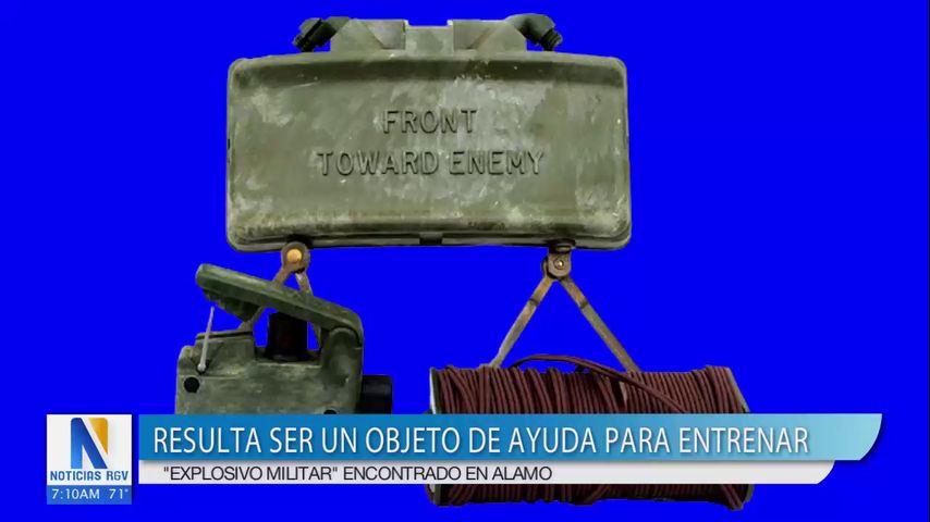 Autoridades han dado a conocer que el explosivo militar hallado en Alamo el miércoles era realmente una ayuda de entrenamiento.