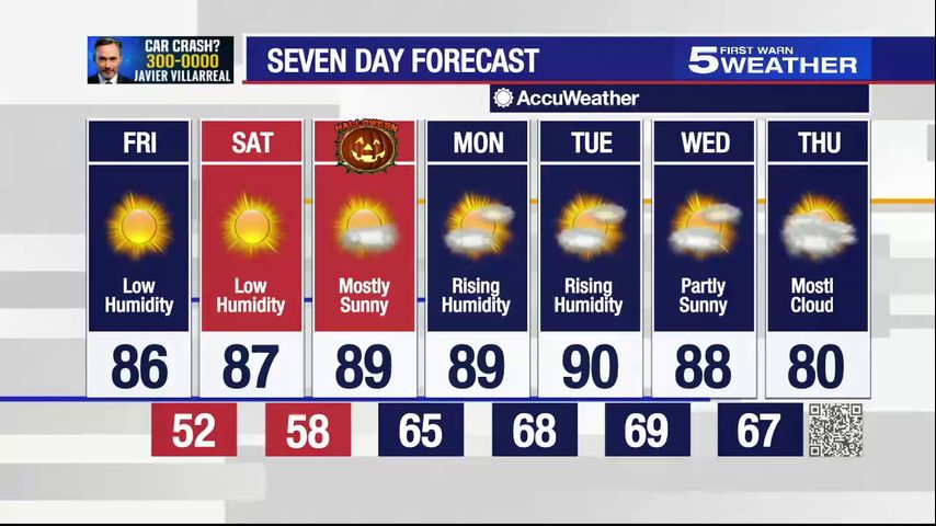 Oct. 29, 2021: Low humidity with temperatures in the 80s