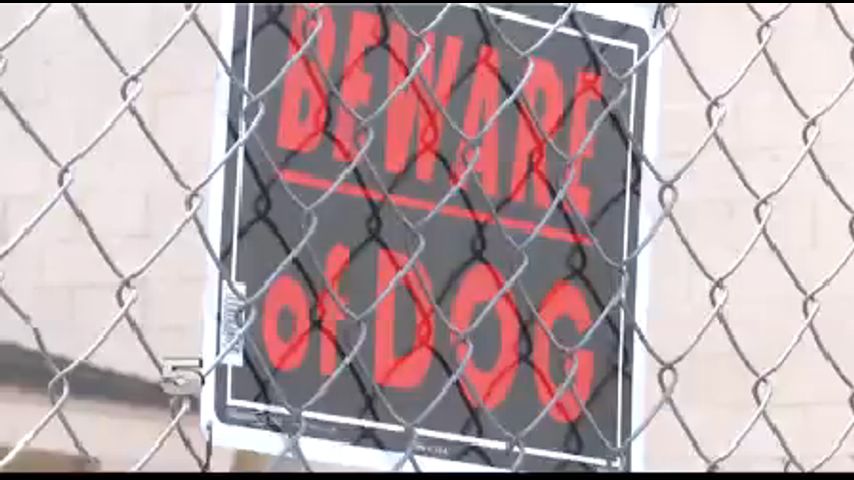La propiedad de la familia tiene una cerca de alambre y hay letreros visibles que advierten de la presencia de perros.