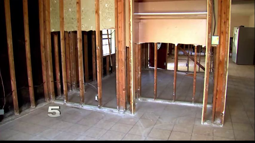 In others, five feet of sheet rock was cut out, leaving the skeleton to the home standing.