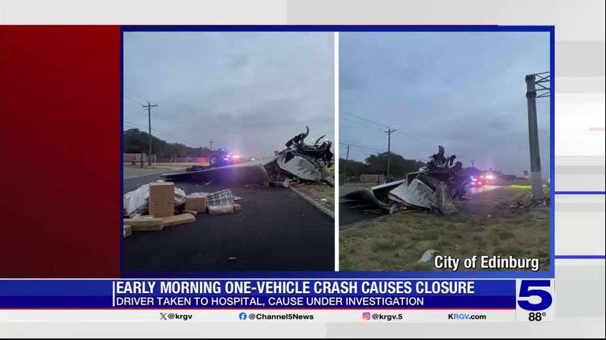 The city of Edinburg confirmed it was a one-vehicle crash and the driver was taken to the hospital, with non-life threatening injuries.