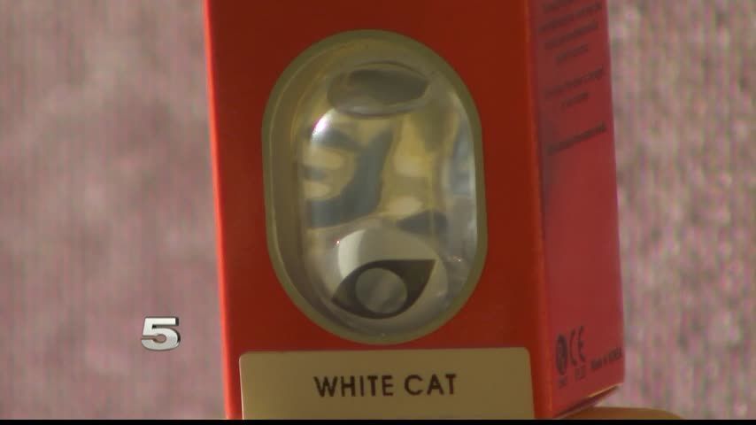 El dueño de la tienda rechazó una entrevista en la cámara, pero se sorprendió cuando le informamos que era ilegal vender este tipo de lentes de contacto. . Quitó los anuncios de la vitrina y nos prometió que ya no los vendería.