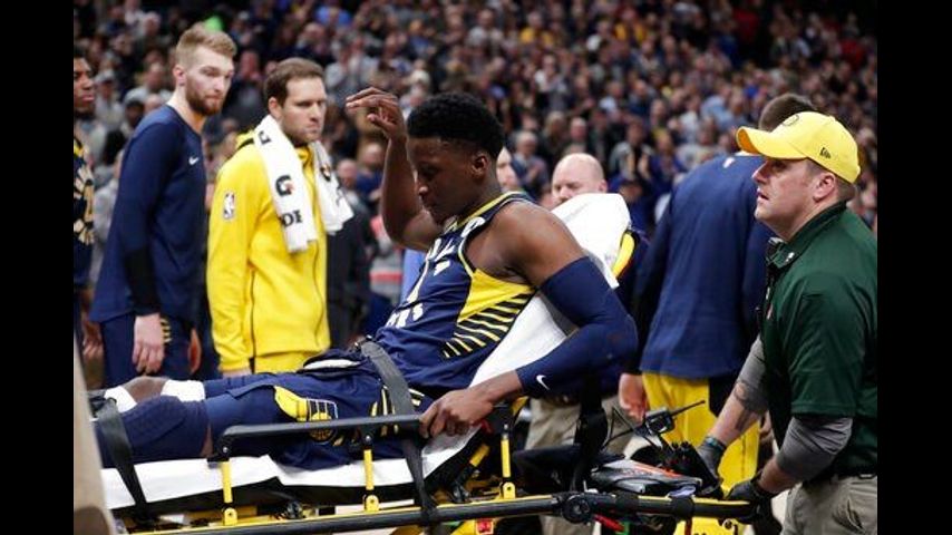 INDIANAPOLIS (AP) - A promising season for the Indiana Pacers was instantly transformed when Victor Oladipo's leg buckled and he fell to the floor in pain.