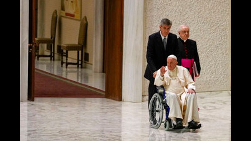 CIUDAD DEL VATICANO (AP) — El papa Francisco llegó el jueves a una audiencia en el Vaticano en una silla de ruedas debido a los dolores de rodilla que continúan limitando su movilidad.