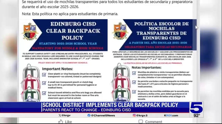 Parents react after Edinburg CISD implements clear backpack policy