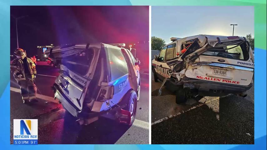 La policía de McAllen estaba ayudando con el control del tráfico para evitar otros accidentes en la vía de velocidad controlada cuando la patrulla policial fue afectada.