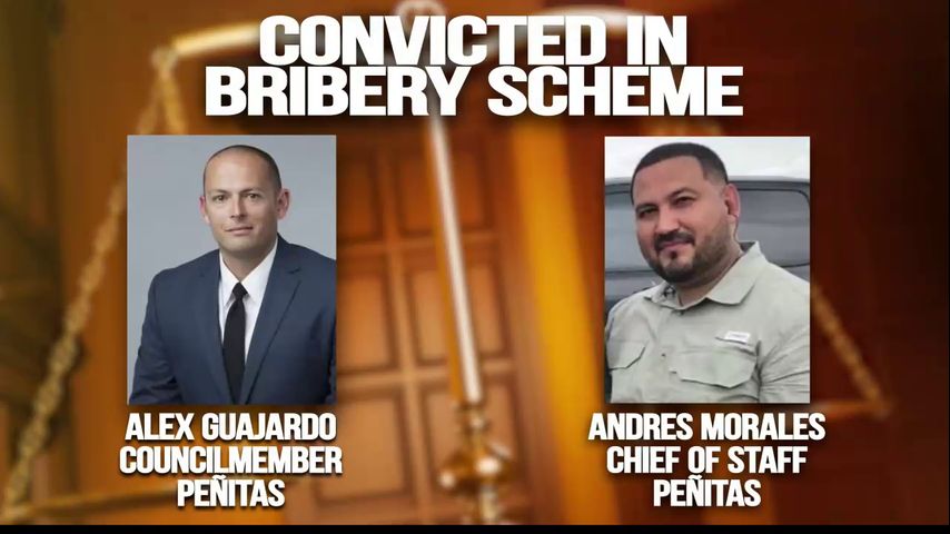Peñitas Chief of Staff Andres Morales, 41, and Peñitas City Councilman Alex Guajardo, 38, pleaded guilty to bribery Friday. Both men were convicted of participating in a bribery scheme involving the payment of bribes and kickbacks to public servants and officials in exchange for votes or recommendations in support of granting energy savings contracts at various Hidalgo County political subdivisions.