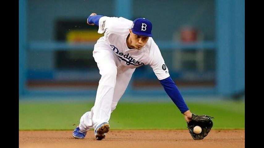 His ground-rule double into the right field corner left the Dodgers trailing 2-1 in the first.