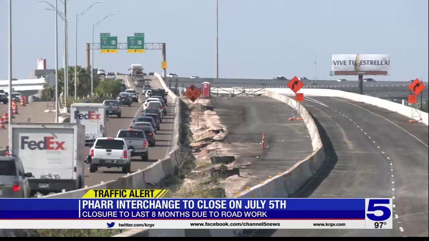 The detour is expected to last eight months as crews continue working on the I-2/I-69C Interchange Project in Pharr.