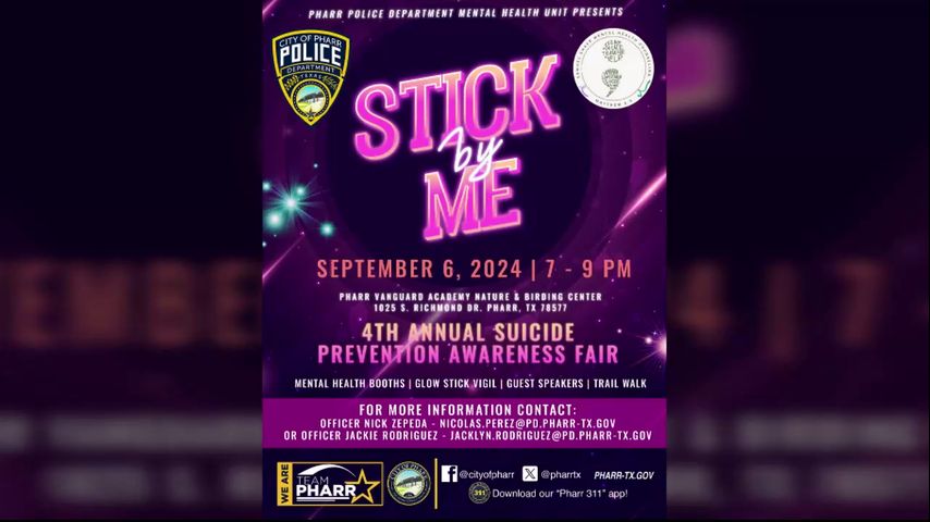 The Pharr Police Department will hold their fourth annual Stick By Me Suicide Prevention Awareness Fair on Friday, September 6, 2024.