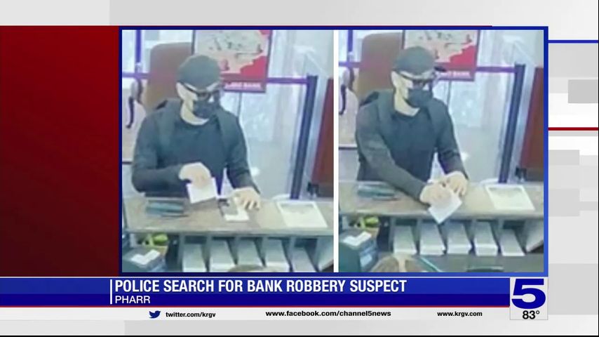 Officers with the Pharr Police Department responded to the IBC Bank at 1007 N. Veterans Blvd. at 5 p.m. Friday where preliminary investigation revealed that a Hispanic male wearing a black shirt, black pants along with black sunglasses, black cap and a black face mask entered the IBC bank and made gestures indicating he had a weapon while demanding money from the teller.