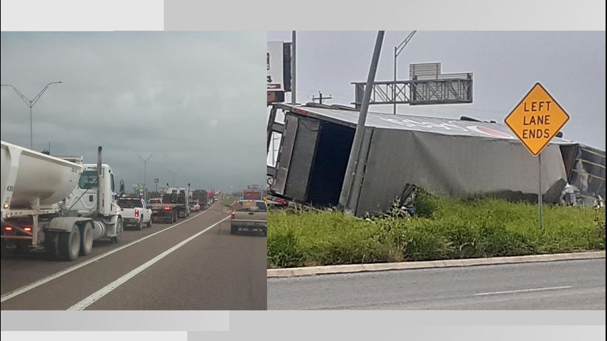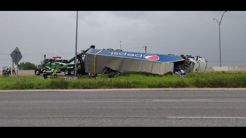 An overturned Pepsi truck slowed down traffic on eastbound Expressway 83 in San Benito Wednesday morning.