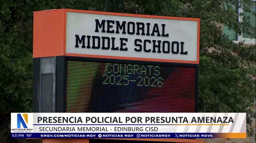 Se decretó presencia policial adicional en la Escuela Intermedia Memorial en Edinburg luego de una amenaza republicada en las redes sociales, según el jefe de policía del Distrito Escolar Independiente Consolidado de Edinburg, Ricardo Pérez.