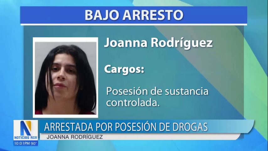 Joana Rodríguez está acusada de posesión de sustancia controlada, un delito de tercer grado y por la orden de atropello y fuga del departamento de policía de Pharr.