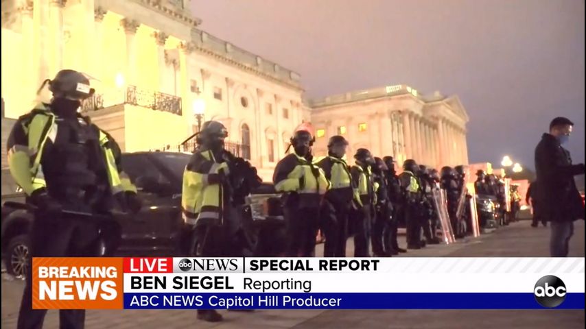 As darkness began to set in, law enforcement officials were working their way toward the protesters, using percussion grenades to try to clear the area around the Capitol. Big clouds of tear gas were visible.