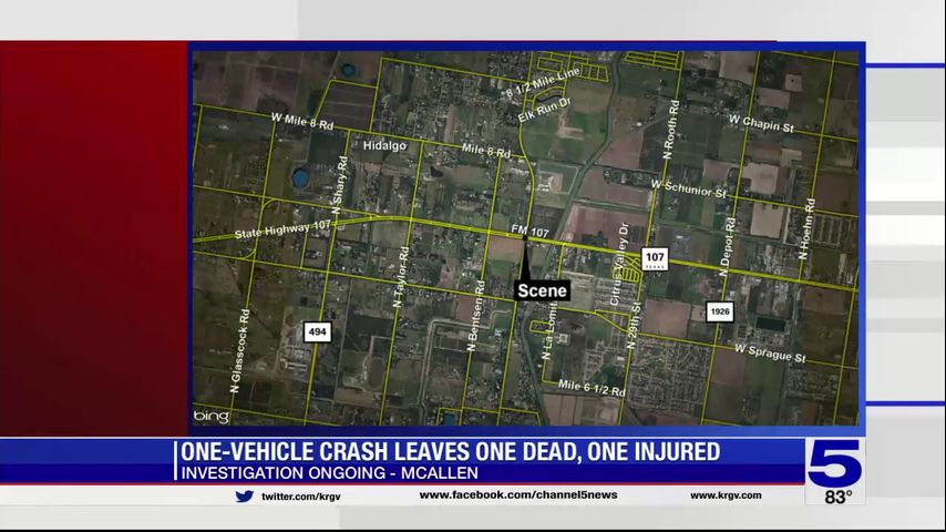 Police: One person dead, one hospitalized after single-vehicle crash in McAllen