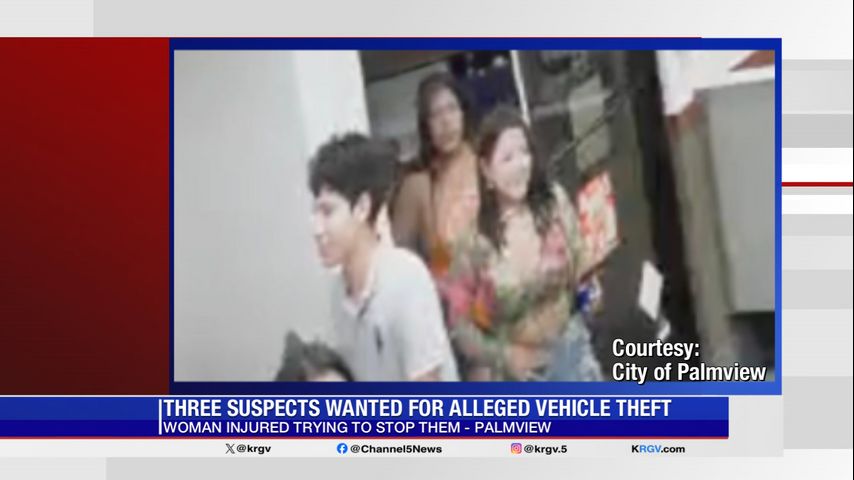 The Palmview Police Department is seeking the public’s help in locating three suspects accused of running over a woman’s foot while stealing her car.