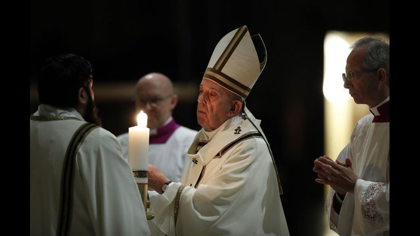VATICAN CITY (AP) — Easter offers a message of hope in people’s “darkest hour,” Pope Francis said, as he celebrated a late-night vigil Mass Saturday in St. Peter’s Basilica, with the public barred because of the COVID-19 pandemic.