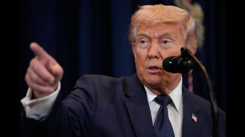 President Donald Trump speaks at a news conference, Monday, March 9, 2026, at Trump National Doral Miami in Doral, Fla. (AP Photo/Mark Schiefelbein)