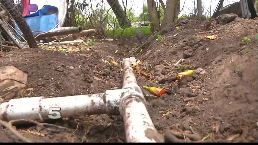 Pollock says the municipal water supply runs from the edge of the water meter to the side of the house; there were no visible wet spots or patches of over-hydrated grass.