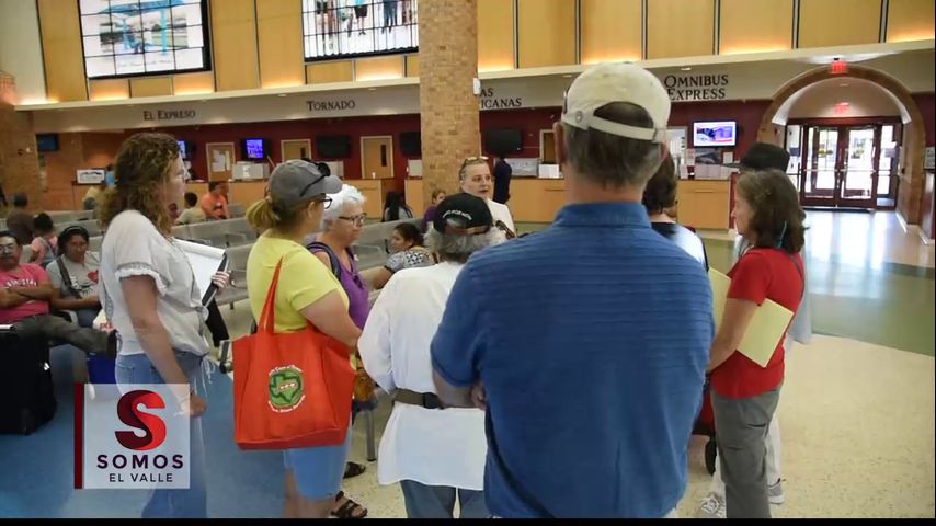 En esta central de autobuses en Brownsville, un grupo de voluntarios recibe un curso sobre el programa el protocolo de proteccion al migrante o MPP.