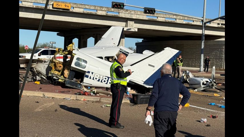 Propeller plane crashes onto a Texas highway, sending 4 people to hospitals