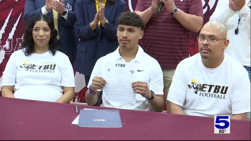 PSJA wide receiver Caleb Salas signed on to play at Eastern Texas Baptist University on Wednesday morning.