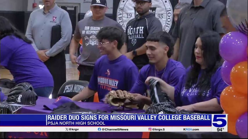 PHARR, Texas -- PSJA North baseball players Leroy Palacios and Mario Sauceda signed their national letter of intent to join Missouri Valley College.