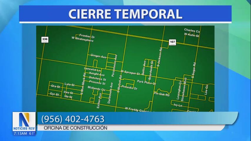 Realizan cierre temporal de la vía South Mccoll en Pharr