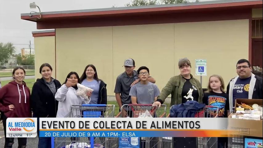 Dulce Ibarra y Jessica Garza, representantes de Edcouch-Elsa Rotary Club, visitan las instalaciones de Noticias RGV para invitar a la comunidad del Valle a un evento de recolecta de alimentos para ayudar a llenar la despensa de alimentos en la iglesia Santa Teresa.
