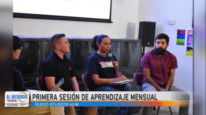 Dani Marrero Hi y Fátima Garza, cofundadoras de 'Ruido Studios HUB', visitan las instalaciones de Noticias RGV para invitar a la comunidad del Valle a la primera sesión de aprendizaje mensual a realizarse en la Biblioteca Pública de McAllen.